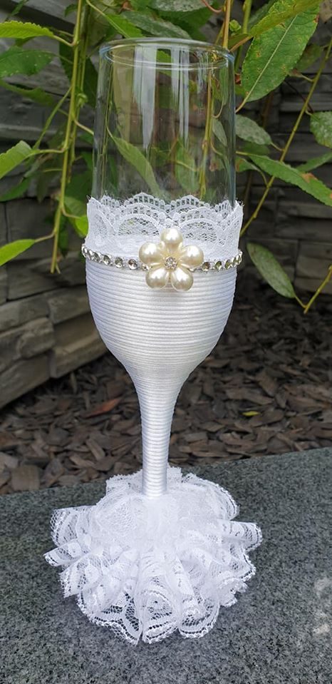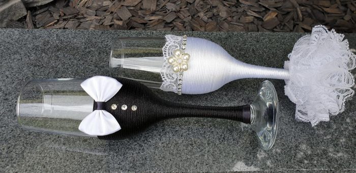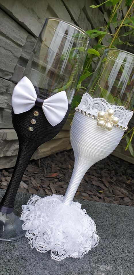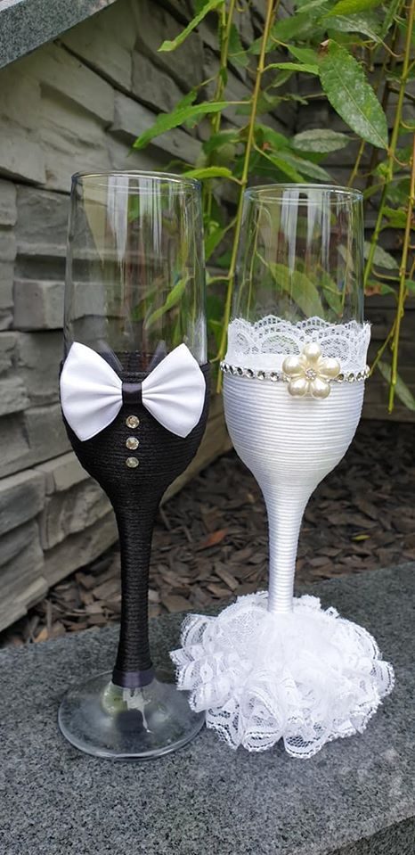 Model 10 Cijena kompleta: 18,00€ Čaše su ručno ukrašene kvalitetnim satenskim konopom te dekorirane satenskom mašnom, čipkom, cirkonima, tilom i ukrasnim brošem. Cijena se odnosi na komplet od dvije čaše. Mogućnost promjene boja i dekoracija po želji – cijena na upit.