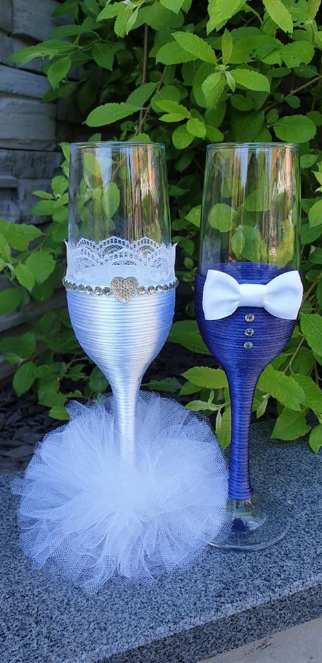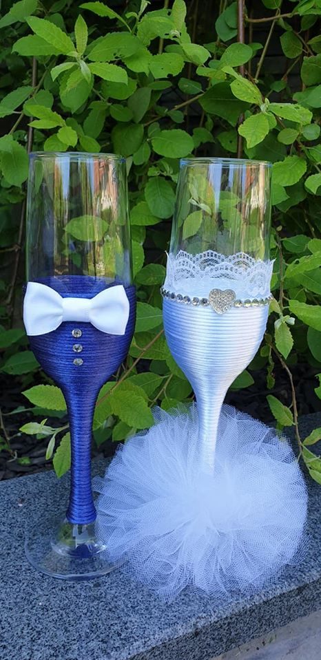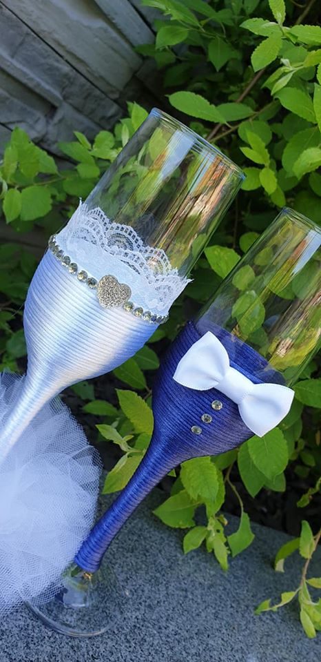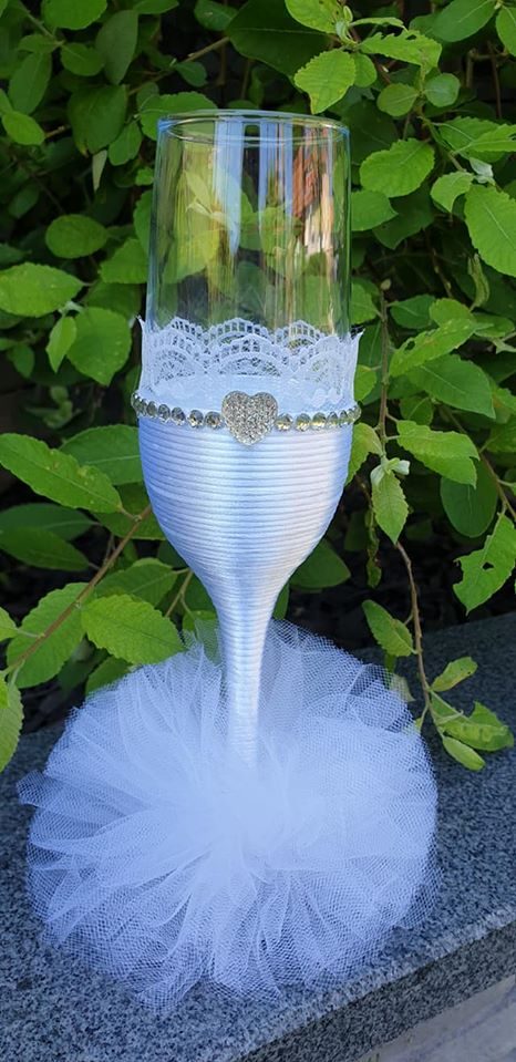 Model 7 Cijena kompleta: 18,00€ Čaše su ručno ukrašene kvalitetnim satenskim konopom te dekorirane satenskom mašnom, čipkom, cirkon trakom, tilom i ukrasnim srcem. Cijena se odnosi na komplet od dvije čaše. Mogućnost promjene boja i dekoracija po želji – cijena na upit.