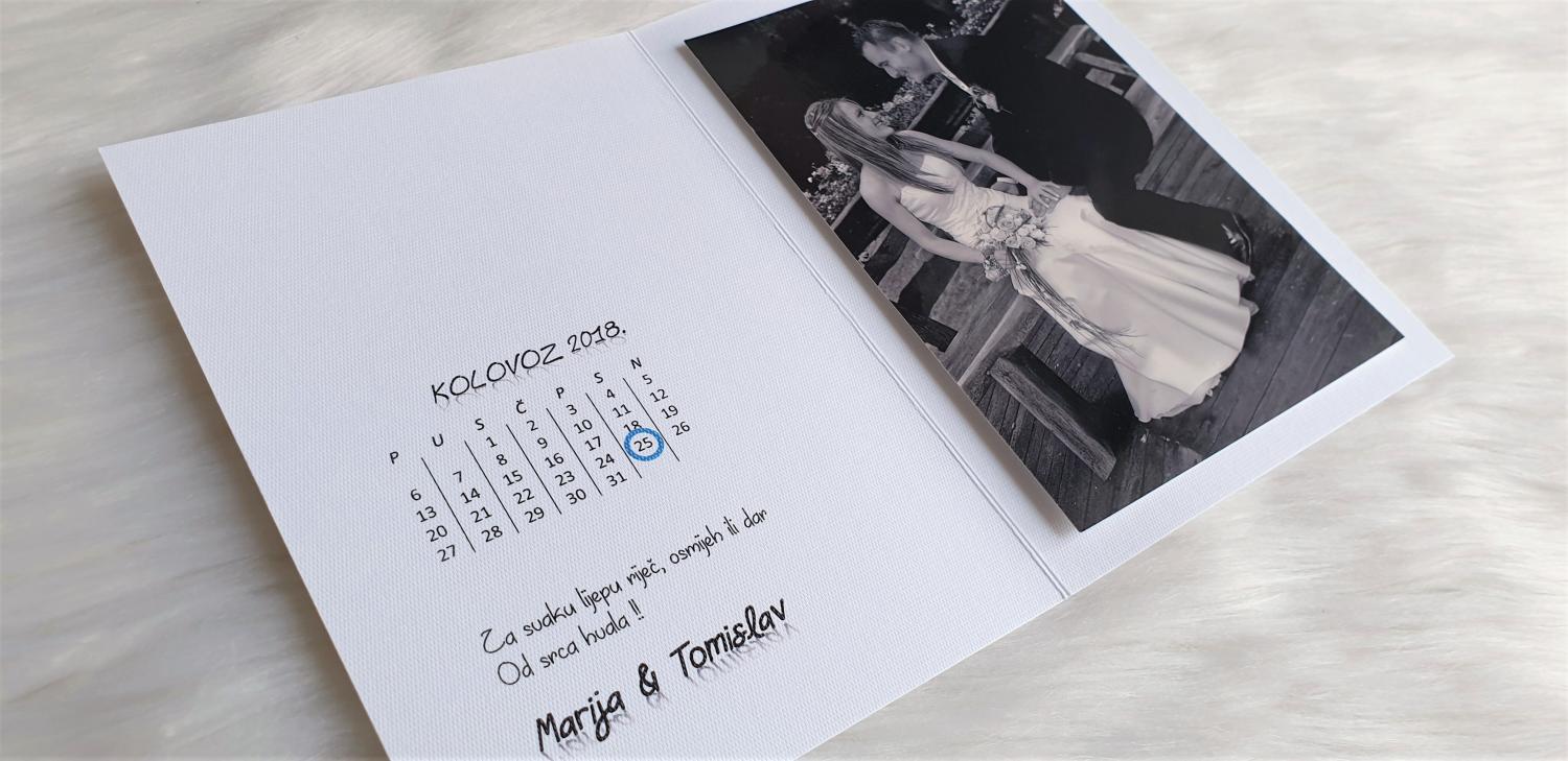 Zahvalnica je izrađena od bijelog papira sa strukturom na otvaranje, sa tiskom na vanjskoj i unutarnjoj strani, u koju se lijepi slika standardne dimenzije 10x15cm.